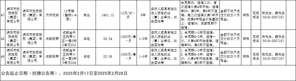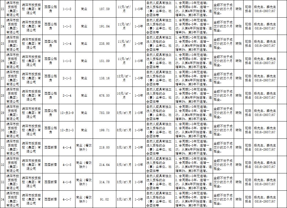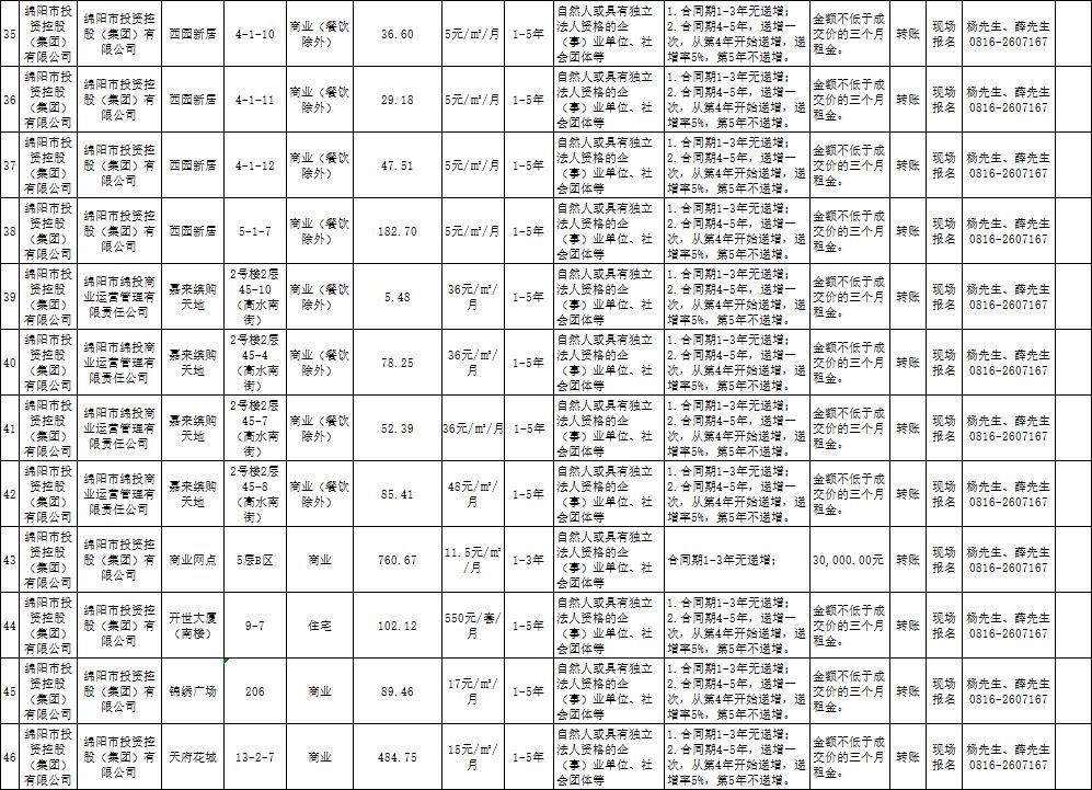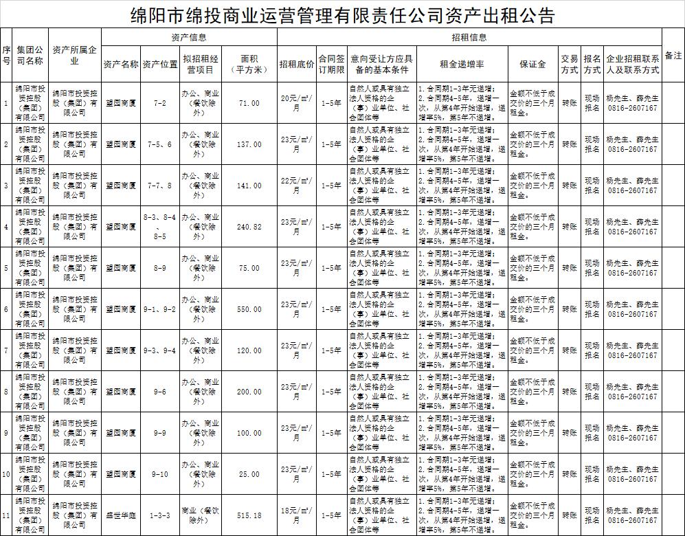 绵阳市k1体育注册就送38元商业运营管理有限责任公司资产出租公告