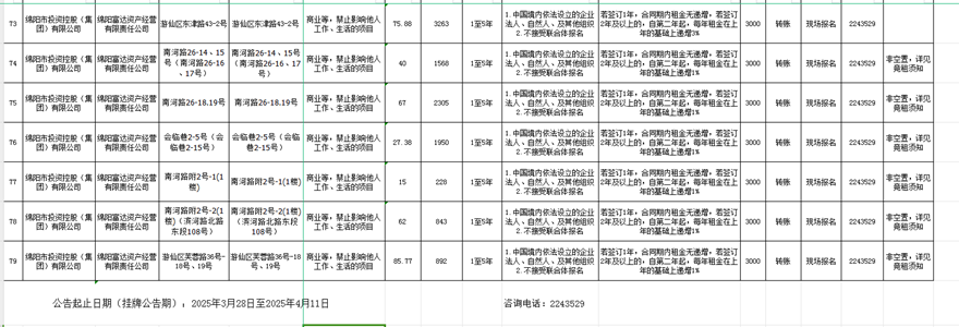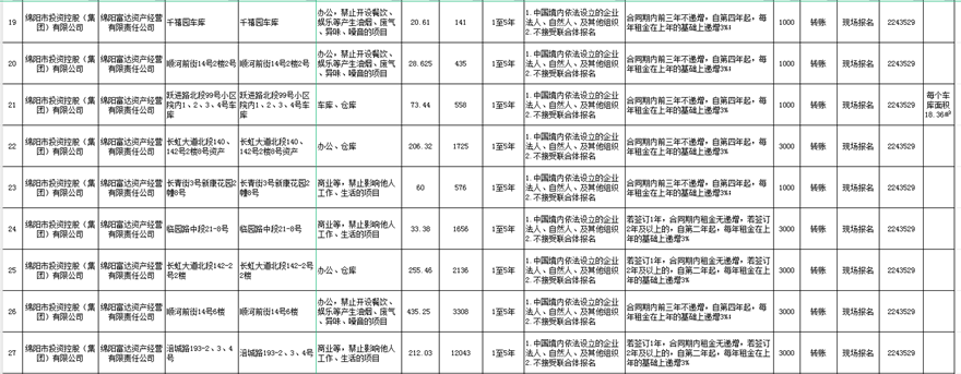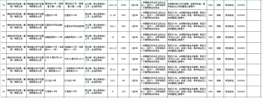 绵阳富达资产经营有限责任公司出租公告