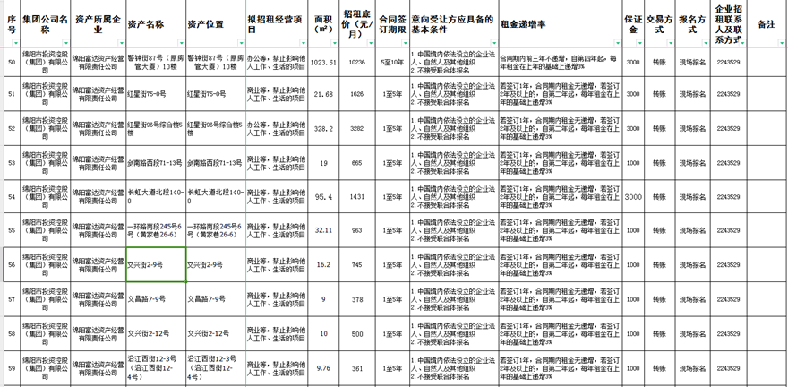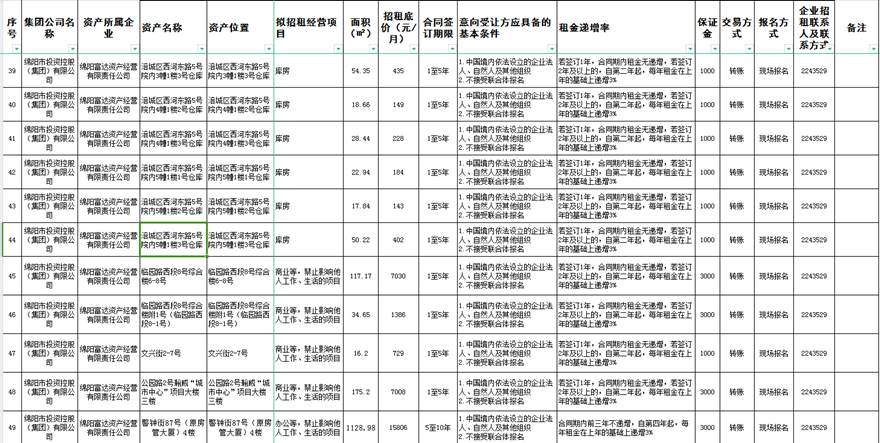绵阳富达资产经营有限责任公司资产出租公告