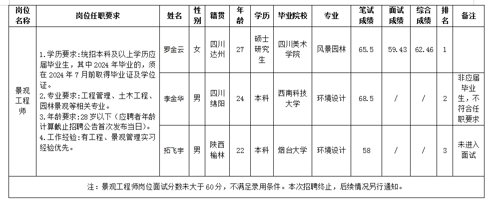 根据绵阳市k1体育注册就送38元置地有限公司发布的招聘公告及招聘相关规定,经笔试、面试等程序,现将笔试、面试成绩予以公示。