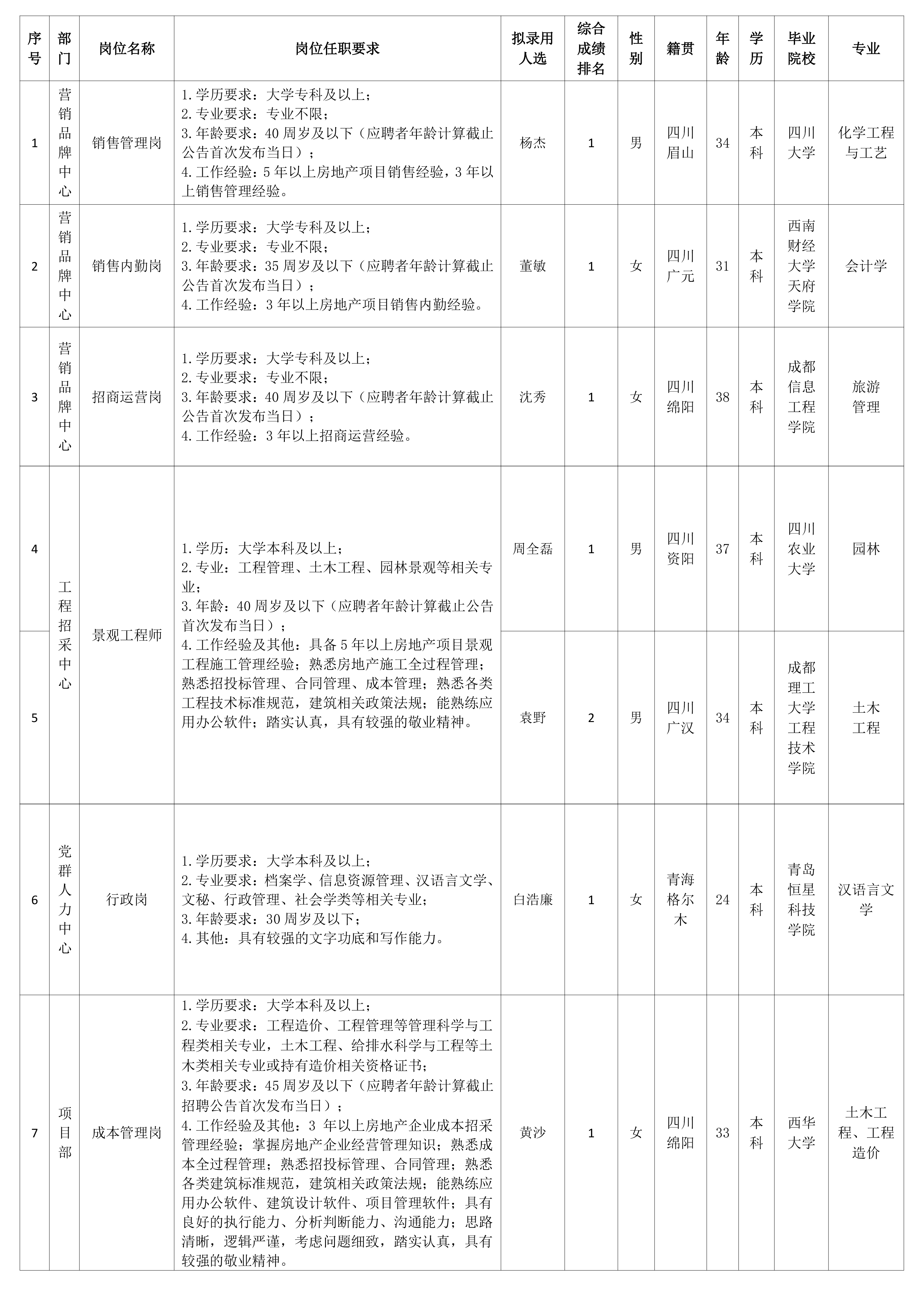 根据绵阳市k1体育注册就送38元置地有限公司发布的招聘公告及招聘相关规定,经笔试、面试、考察、体检等程序,拟录用杨杰等同志到绵阳市k1体育注册就送38元置地有限公司工作,现予以公示,具体情况如下: