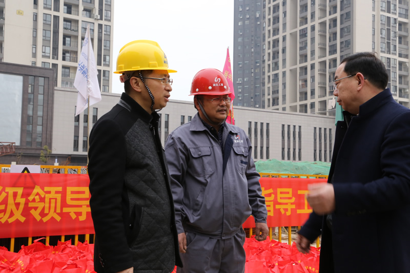 洪山区总工会副主席汪国胜(右)与集团公司工会主席郭迪明、项目经理马冬青交流了解情况