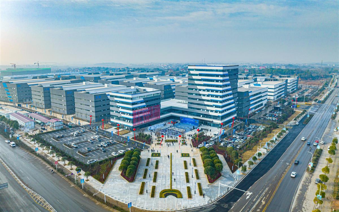 走进黄石市大冶湖高新区一期电子信息产业园工程,蓝白相间的高楼科技范十足。